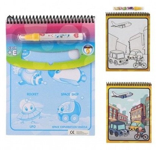 Clean painting! These 'water' coloring books contain four reusable picture pages and a refillable water pen. Use the water pen, whose strokes will reveal colors on the individual pictures, and after the page dries, the image will disappear again. Block dimensions: 17 x 23 x 2 cm Suitable for children from 3 years.