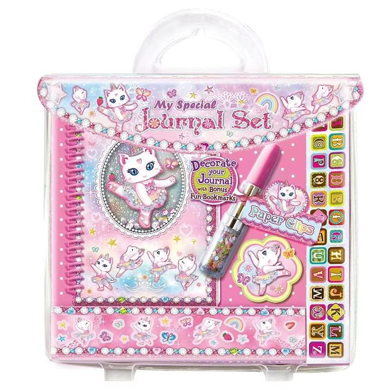 Diary with accessories - cat, contents: Diary, four-color pen, bookmarks, and various types of stickers