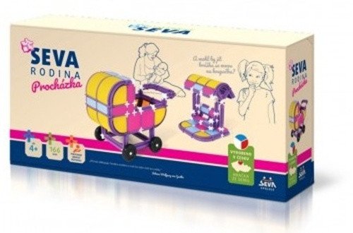 The SEVA FAMILY construction set - Walk contains 166 pieces. It complies with the European standard EN71 for toy safety, and its quality is regularly checked. All SEVA construction sets are mutually compatible, and their possibilities can always be expanded. The set is creative, developing children's minds and manual skills, and supports fine motor skills. Package dimensions are 32 x 17 x 8 cm. Suitable for children aged 4 and up.
