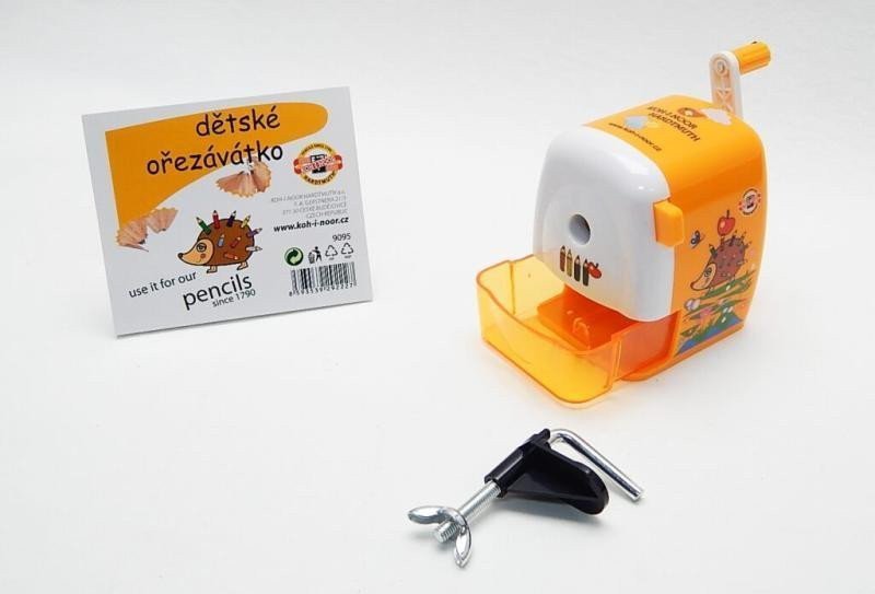 The product is used for sharpening pencils (both colored and graphite) with a diameter of up to 11.6 mm. A desktop plastic crank sharpener - for standard thin and JUMBO pencils (colored and graphite). This sharpener features an adjustable pencil holder with the option to set the sharpening type according to the indicator in the range of 0.06 – 2 mm. The package includes a fastening mechanism for the work surface. The plastic sharpener comes in a white-yellow design with its own design. A leaflet with usage instructions is included in the consumer packaging. Length 114 mm, width 76 mm, height 96 mm.