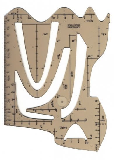 The function graph template is made of smoky transparent polystyrene. It is designed for use with a pencil, mechanical pencil, fountain pen, or technical pens. The curves of individual function graphs are represented by internal and peripheral curves. A millimeter scale with each centimeter marked on the left edge of the template and scales for individual function graphs is printed using precise screen printing technology, which is resistant to wear during regular use. The function graph template is intended for drawing the graphs of functions: y=x², y=2x², y=x²/2, y=x³, y=1/x, y=2x, y=e^x, y=10^x, y=sin x, y=sin 2x, y=sin x/2, y=2 sin x, y=tg x. It is designed for use in schools and offices. It is packaged in a polyethylene bag with a euro hanger.