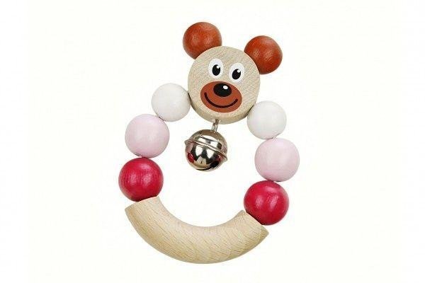 Chrastítko Medvěd růžový 7x9cm dřevěné