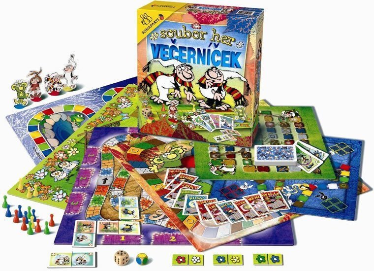 Who wouldn't know the popular characters from children's evening shows, such as Rákosníček, Křemílek and Vochomůrka, Malá Čarodějnice, and Štaflík and Špagetka, drawn by Mr. Zdeněk Smetana? Come and experience fun and excitement with these games: How Křemílek and Vochomůrka planted flowers, How Malá Čarodějnice discovered a magical book, How Rákosníček jumped into the middle of the pond, How Rákosníček set out for the Star, How Křemílek and Vochomůrka traveled to the cottage, Štaflík and Špagetka play Ludo! This game set also includes: the popular card game Černý Petr, Picture Pexeso, and Domino. Package dimensions: 360 x 310 x 70 mm Number and size of game boards: 2 pcs 326 x 326 mm, 1 pc 489 x 489 mm Game duration: 20 - 40 min