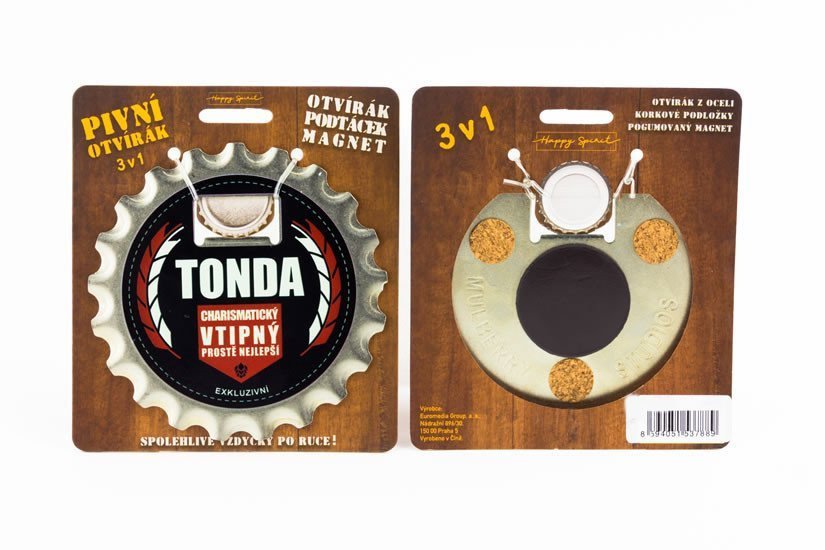 The bottle opener in the shape of a large beer cap is a great choice for all lovers of the most traditional Czech beverage. Additionally, it surprises with other possibilities. Use it as a coaster, attach it to the fridge thanks to the magnet. Delight the male ego with flattering inscriptions. With a wide selection of the most common male names and general family names, you can easily find the most suitable one for you.