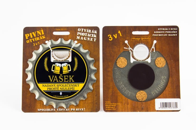 The bottle opener shaped like a large beer cap is a great choice for all lovers of the most traditional Czech beverage. Moreover, it surprises with additional options. Use it as a coaster, or attach it to the fridge thanks to the magnet. Delight the male ego with flattering inscriptions. With a wide selection of the most common male names and general family names, you can easily find the most suitable one for you.