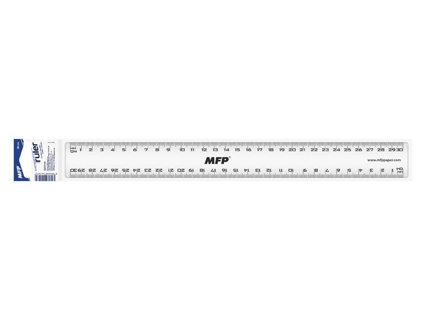 School straight plastic ruler, 30 cm long - a helper for geometry.