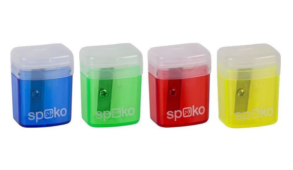School sharpener with a practical lid and container, in a color mix. Overall dimensions: 25 x 19 x 35 mm. Packaging: 24 pcs/display.