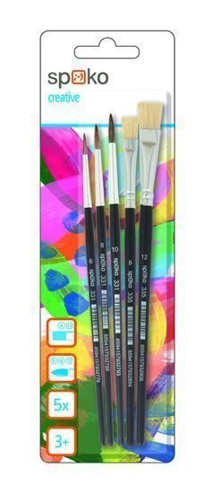 School brush set in a mix of sizes - flat bristle and round hair. Packaging: 5 pieces per blister.