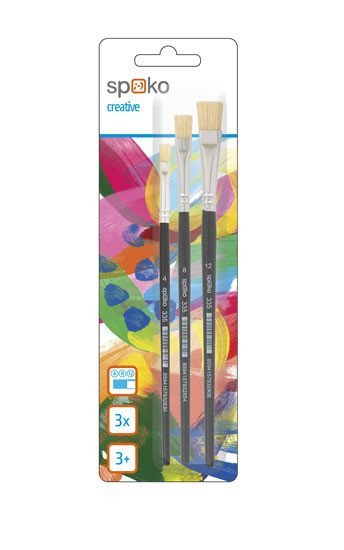 School set of flat brushes in a mix of sizes: 4, 8, 12. Packaging: 3 pieces/blister.