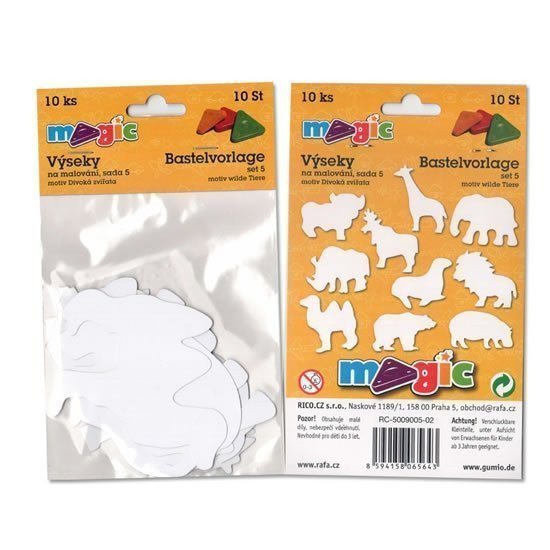Set of 10 die-cut figures. Material: white cardboard 220g. Ideal for painting - frottage with magic wax crayons. Not suitable for children under 3 years, contains small parts. Dimensions of the images approximately 4cm x 7cm.