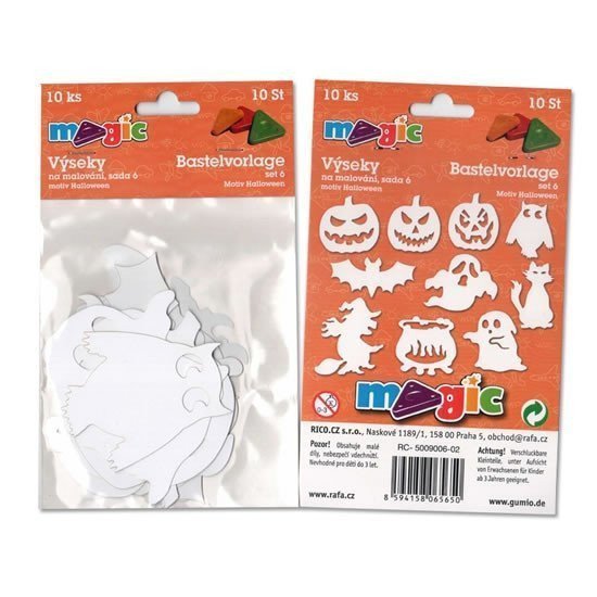 Set of 10 die-cut figures. Material: white cardboard 220g. Ideal for painting - frottage with magic wax crayons. Not suitable for children under 3 years, contains small parts. Dimensions of the images approximately 4cm x 7cm.