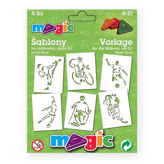 Set of 6 paper painting templates. Material: white cardboard 220g. Recommended for painting with magic wax crayons (frottage technique), also suitable for stenciling with tempera paints, for painting with blow pens, or using modeling clay. Dimensions: 11x14cm.