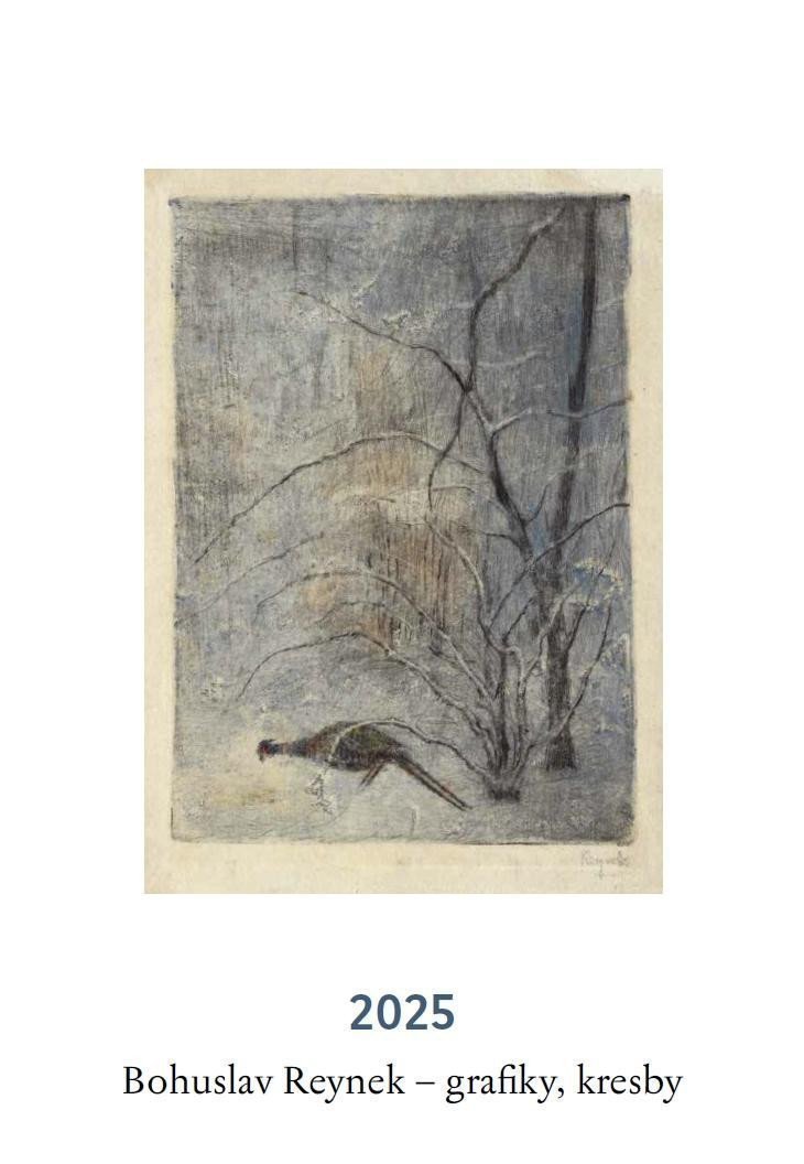 Wall calendar featuring graphic sheets and drawings by Bohuslav Reynka. ***** Pheasant in Winter (colored drypoint with monotype, 1947), Snow IV (drypoint, pencil, 1941), Veronica with Christ II (colored etching and drypoint with monotype, 1950), Sheep in Winter (drypoint, 1950), Pieta with Fish (drypoint with monotype, 1966), Almond Blossom (pastel, 1930), Head of John the Baptist (colored drypoint with monotype, 1966), Rosehip Bush (colored drypoint, 1933), Christ in the Desert (etching with monotype, 1955), Mary in the Stable (colored drypoint with monotype, 1960), October (colored drypoint with monotype, 1966), Little Fire (pastel, 1929), Flight into Egypt VI (drypoint, 1963).