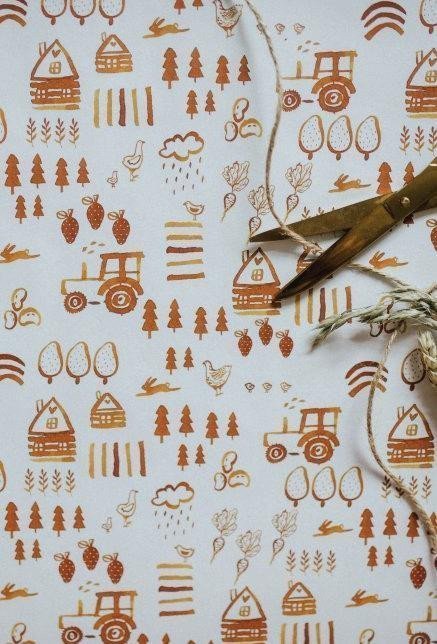 Be Nice EKO year-round wrapping paper with countryside motifs for gifts for children. The original designs were created by Czech illustrator Bára from Nikolajka.