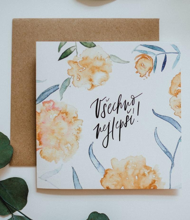 BE Nice ecological greeting card "Peony - Happy Birthday" - featuring original designs of the Czech peony. The original motifs for the card were created by Czech illustrator Bára from Nikolajka. Size: 15.5 x 15.5 cm
