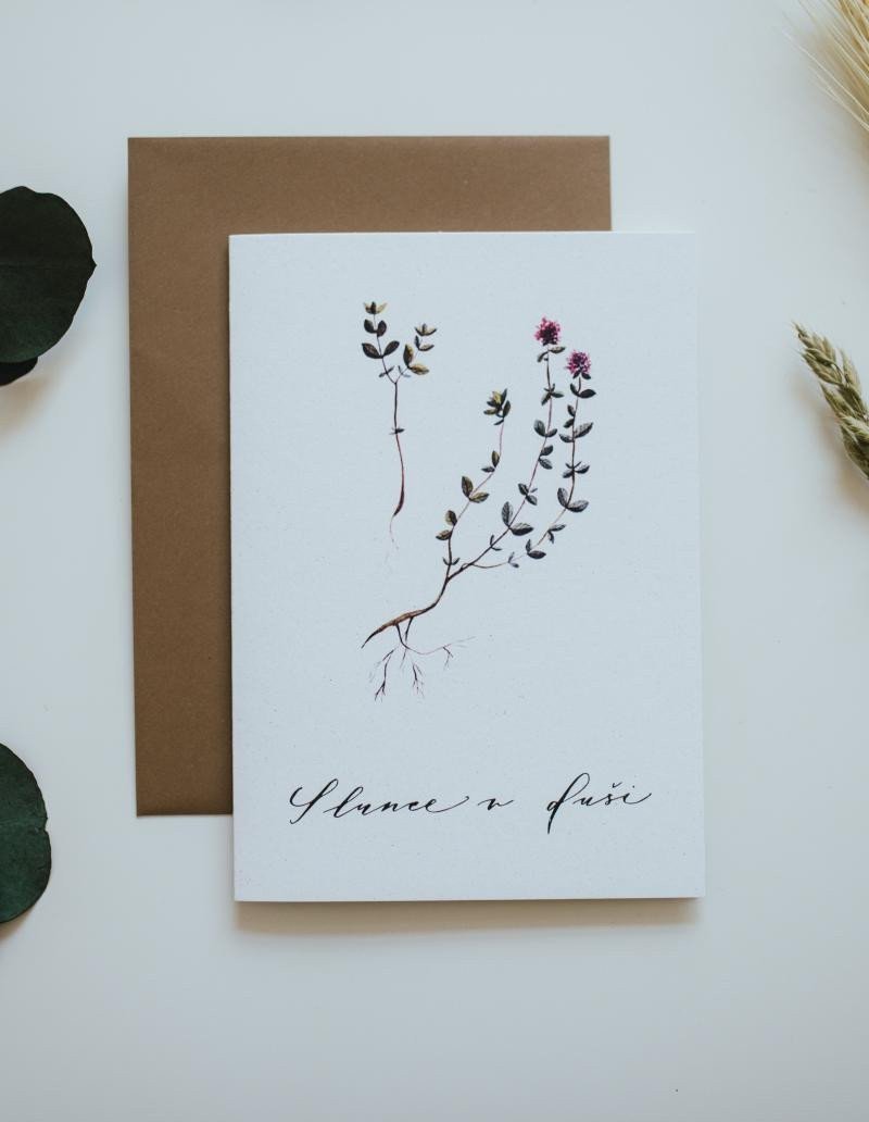 Be Nice eco-friendly card "Sun in the Soul" - with original design of the Czech herb thyme. The card was illustrated by Czech artist Bára from Nikolajka. Size: 12 x 17 cm