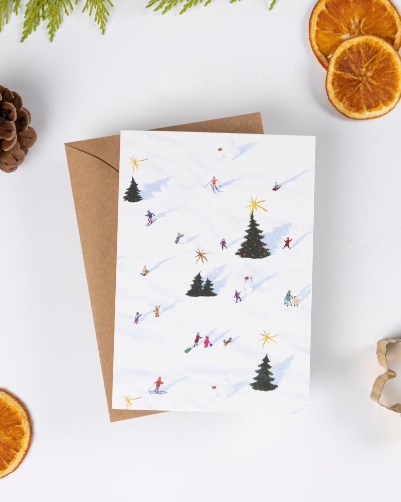 Be Nice EKO Christmas card made from recycled paper. Winter fun represents everything we long to do in winter. Express yourself through a beautiful winter card. The design of the card was created by Czech artist Lela Geislerová. Size: 12 x 17 cm.