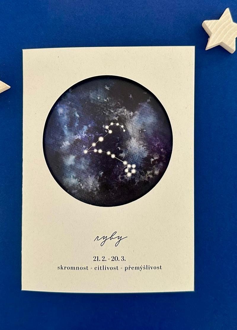 Be Nice EKO card Zodiac Sign - Pisces. Do you believe that zodiac signs are a part of us and tell something about us? A beautiful card that carries the positive traits of the sign and is complemented by its own constellation. All this along with beautiful text and a unique design of a truly cosmic card. The card has a cut-out on the front page. The card was illustrated by Czech artist Bára from Nikolajka. Size: 12 x 17 cm.