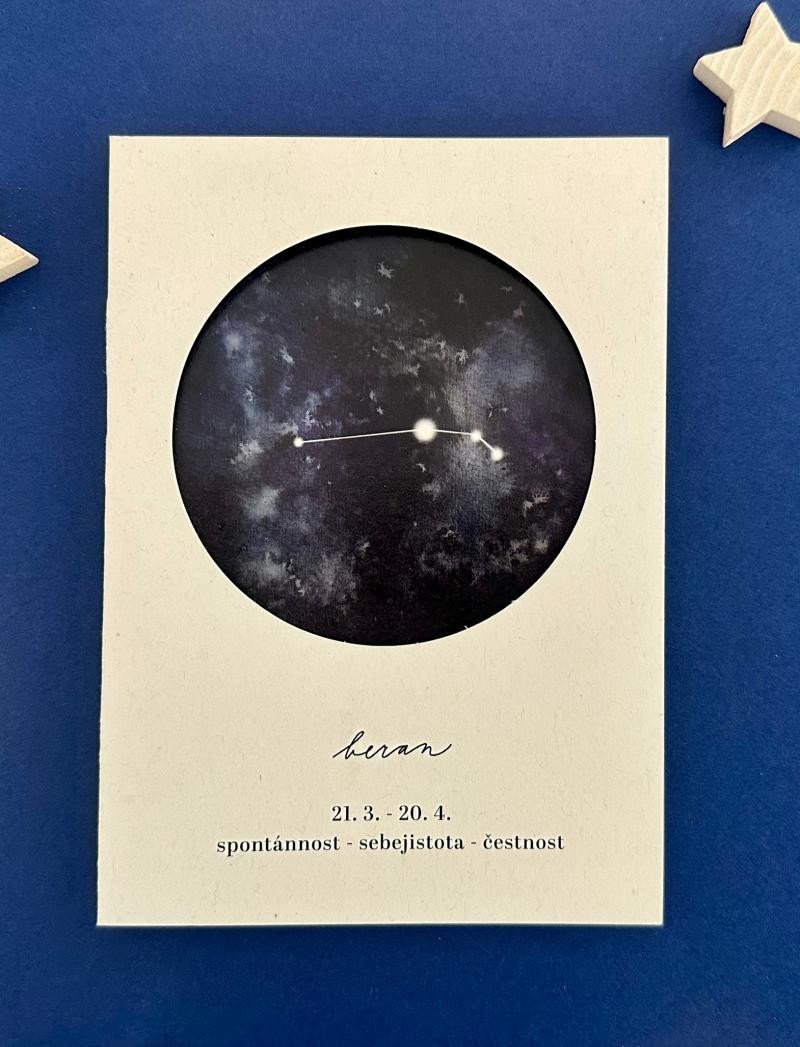 Be Nice EKO greeting card Zodiac Sign - Aries. Do you believe that zodiac signs are part of us and tell something about us? A beautiful card that carries the positive traits of the sign and is complemented by its own constellation. All this together with beautiful text and a unique design of a truly cosmic card. The card has a cut-out on the front cover. The card was illustrated by Czech artist Bára from Nikolajka. Size: 12 x 17 cm.