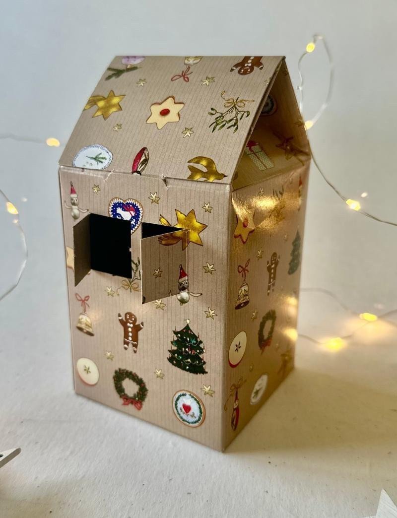 Be Nice EKO original house-shaped box designed for packaging Christmas sweets, small gifts, or for decoration. Fold a little house with your children for fun; the designs will entertain your kids. The houses are made from recycled paper certified for food contact. The design on the box was created by Czech artist Lela Geislerová.