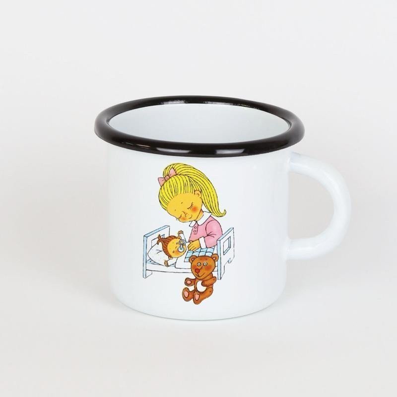 Books illustrated by Helena Zmatlíková can certainly be found in many children's bookshelves. Now you can also get your little ones a beautiful enamel tin mug with a black rim, which is lightweight and durable, adorned with these amazing drawings. Volume 300 ml, height 8 cm.