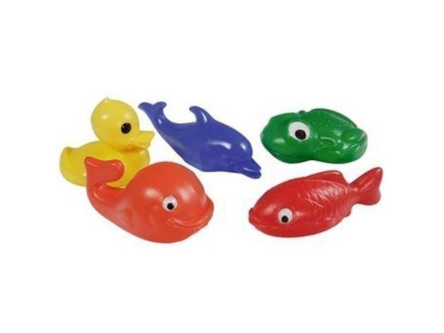 Swimming set animal bath toys plastic 5 pieces in a net 30x15x8cm 12m+.