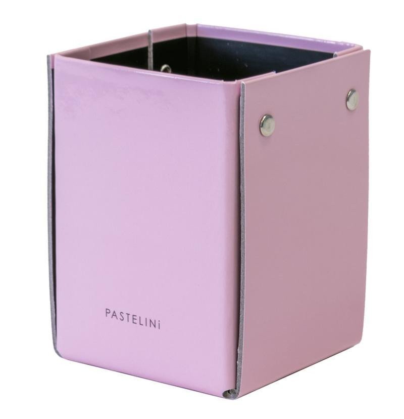 Laminated cup for storing writing and office supplies. Sturdy, riveted material.