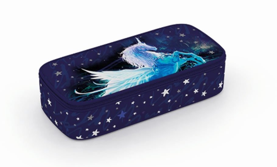 The school pencil case is equipped with sturdy zippers, a zippered pocket, and a flap with sturdy loops on both sides. Under the flap, there is space for the loose storage of writing utensils or other small items. Suitable for 2nd-grade students and older.