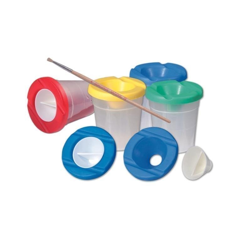 Water cup 9 cm high. When filled to the line, water will not spill when tipped over. The cup features 2 storage grooves for brushes. Durable and flexible material. Supplied in a mix of 4 colors. Color cannot be selected, sent randomly.