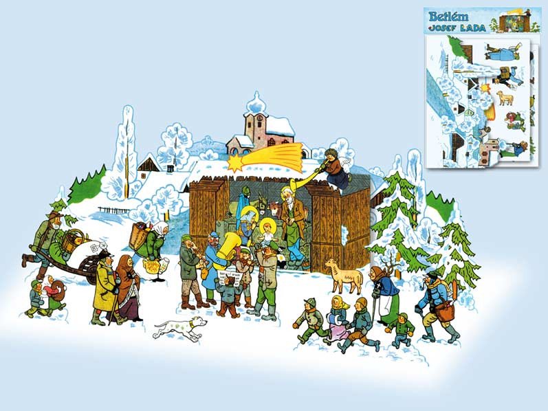 The LADA cut-out, easily assembled nativity scene, without the use of glue or scissors. Legendary illustrations by Josef Lada in the form of a beautiful nativity scene that will enliven your room and set a Christmas atmosphere at home. Here you will find the drawn figures of Josef Lada; you just need to push them out of the base and then assemble them into their final form. The nativity scene is made of 2 mm thick cardboard.