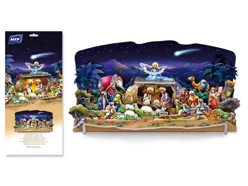 A punched, easily assembled nativity scene without glue and scissors. It will enliven your room and set a Christmas atmosphere at home. Here you will find cartoon characters by Josef Lada, just push them out of the base and then assemble them into their final form. The nativity scene is made of 3 mm thick cardboard, coated with laminate.