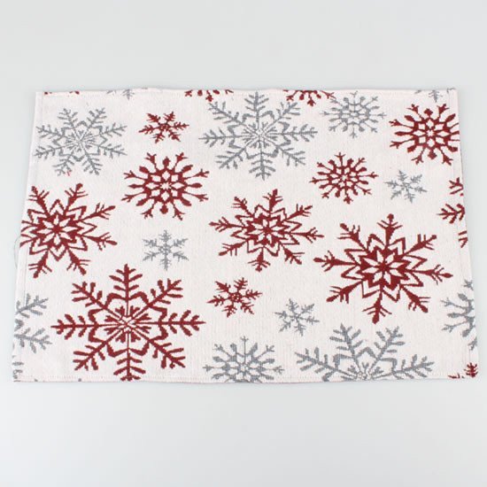 Table mat with red snowflakes. Size 33 x 48 cm.