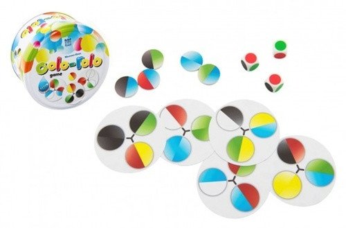 Colo Rolo – Throw three dice, look for color combinations on the cards. Be the fastest and smartest. Another observational game by Maureen Hiron. The first player rolls all the dice at once, and based on the resulting combination, all players search for the correct token. The player who finds the token first places it on one of the 7 cards on the game board. The token must be placed on a circle of the same color. It is placed face down so that the side with 4 colors is visible, and the player's color is directed towards the center of the card (where the line is). This indicates that the token belongs to them, and they earn points according to the table. Number of players: 2-5 Dimensions of the packaging: 9 x 5 x 9 cm Suitable for children: from 5 years old.