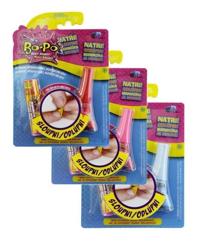 A revolution in the world of manicure. No more nail polish remover! Apply the polish to your nails, let it dry, and enjoy beautiful nails. Want to change your style? Want to enjoy another vibrant color? Simply peel the polish off your nail and you can paint again right away. Attention. Bo-Po also offers magical lip balms. They change color! For children aged 3 and up. Selection is not possible for this item and it will be delivered based on stock availability.