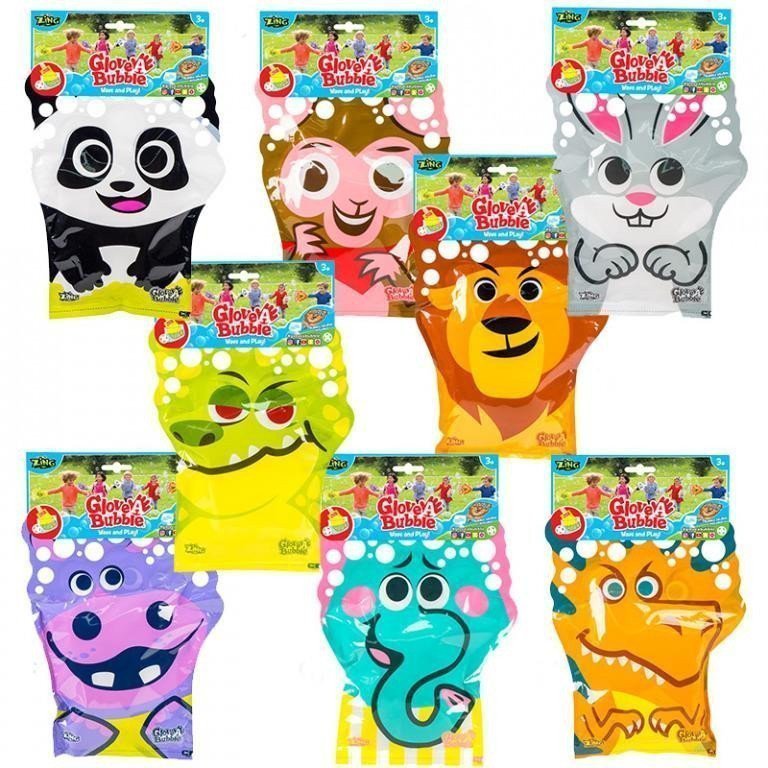 Bubbles, just bubbles. Take out the bubble wand, put on the animal glove, and the bubble fun can begin. Wave your hand, spin, jump, or set the glove to the wind. A bit crazy, but definitely bubbly. Choose your favorite animal, or just have them all. Assortment of 8: Panda, elephant, monkey, crocodile, dinosaur, lion, rabbit, and hippo. For children aged 3 and up. This item is not available for selection and will be delivered based on stock availability.