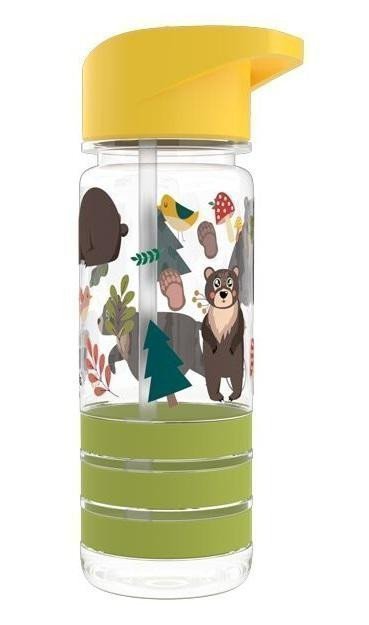 The children's bottle with a straw is made of high-quality Tritan material, has rubber strips for better grip, and a capacity of 550ml.