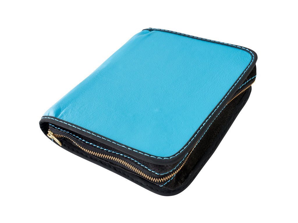 Natural leather, metal zipper, handmade. Suitable for books with maximum dimensions: Height: 22 cm, Width (sum of 2x width + spine): 40 cm