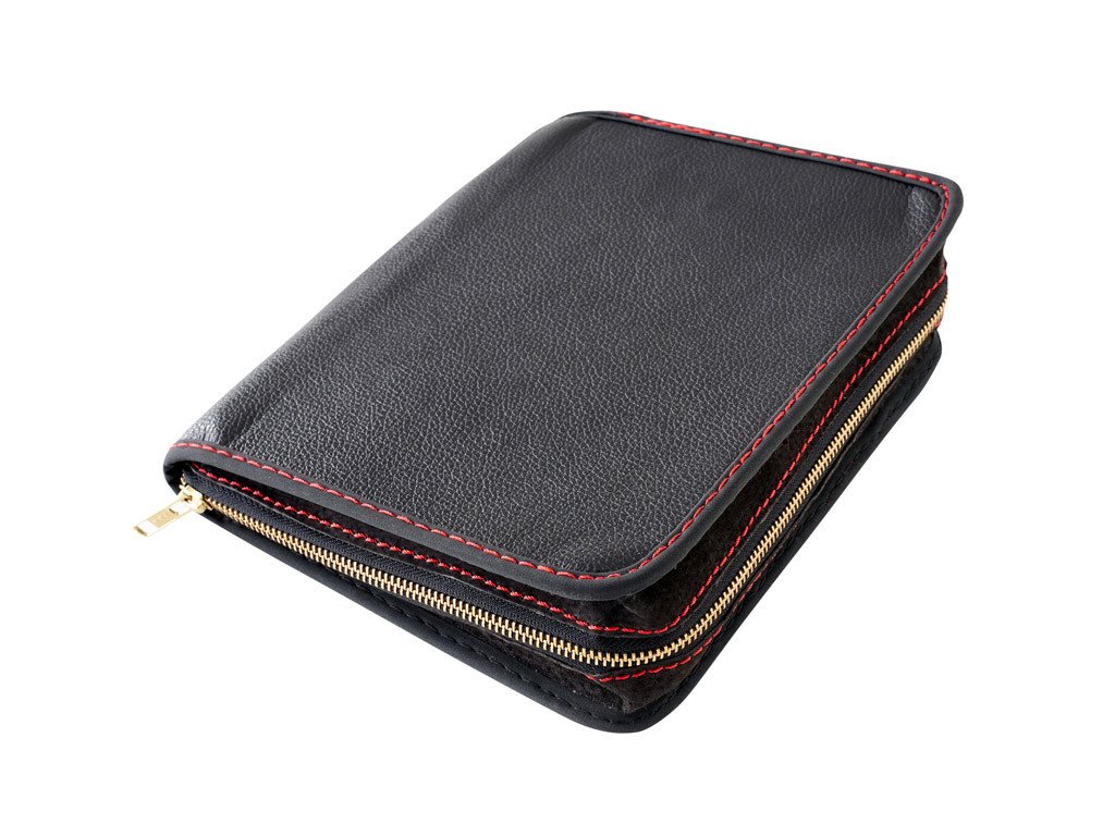 Natural leather, metal zipper, handmade. Suitable for books with maximum dimensions: Height: 22 cm, Width (sum of 2x width + spine): 40 cm