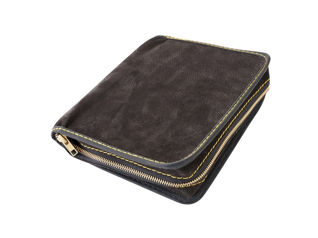 Kožený obal na knihu se zipem - kůže hnědá tmavá semiš