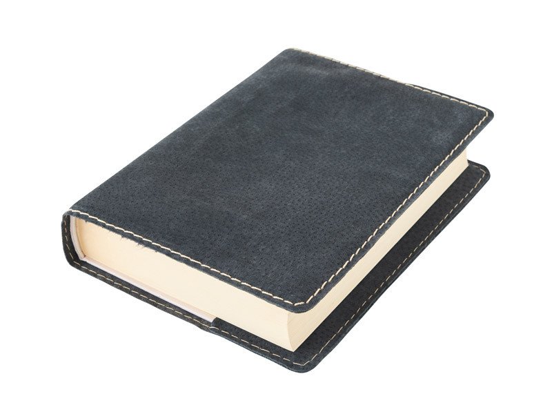 Leather book cover handmade in the Czech Republic. The book cover is made from carefully selected pigskin or cowhide from Czech and foreign tanneries. The cover has a pocket on each side. The classic book cover is designed for a specific book, planner, or Bible.