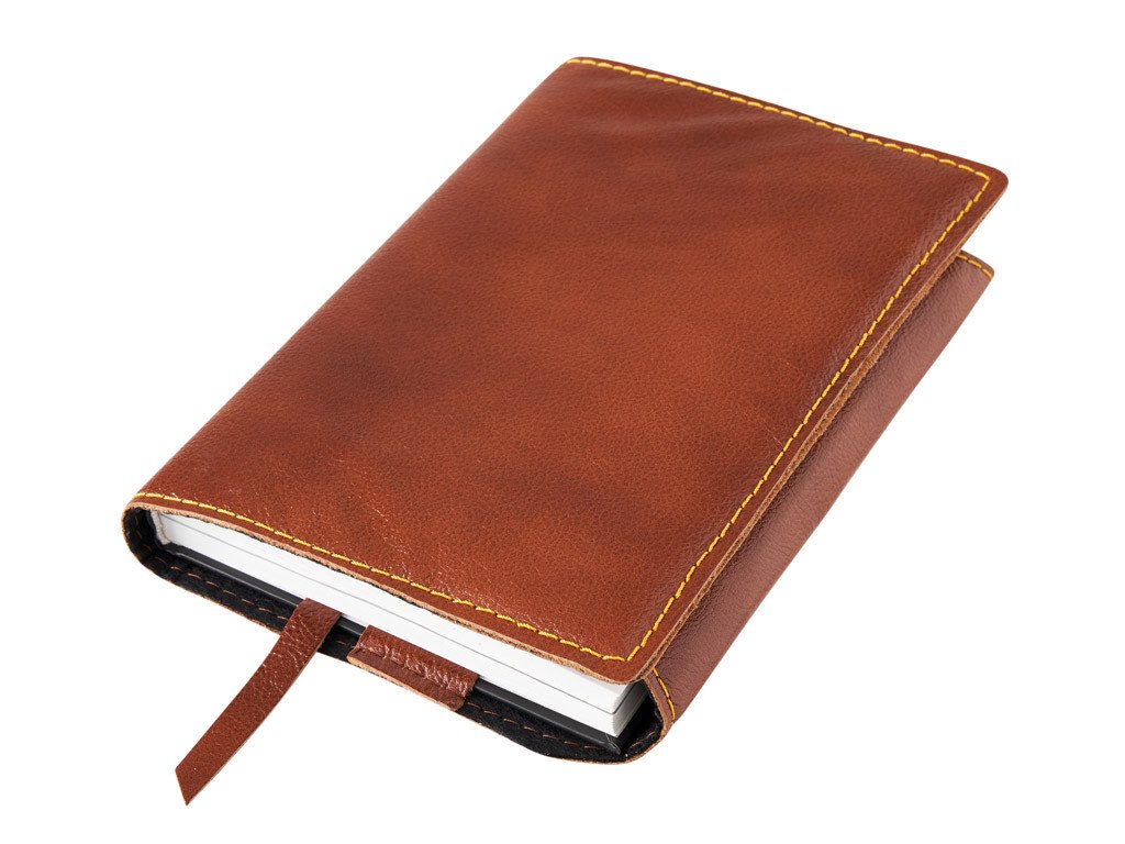 A leather book cover made in the Czech Republic. The book cover is sewn from carefully selected pigskin or cowhide from Czech and foreign tanneries. This cover is suitable for you if you read a lot. One cover will serve you for multiple books of similar height. Thanks to o