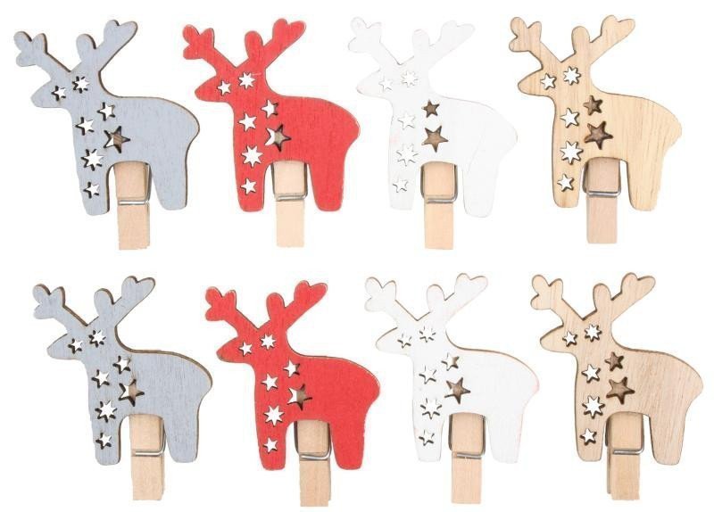 decorative components Wooden reindeer on a clip 4.5 cm, 8 pcs