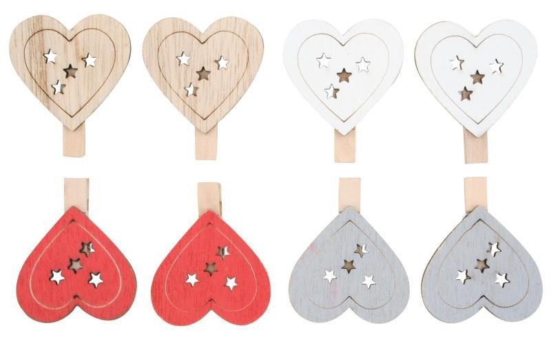 Srdce dřevěné na kolíčku 4,5 cm (8 ks)