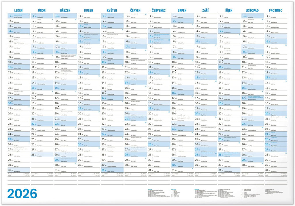 Kalendář 2026 Roční B1, 96,4 x 67 cm