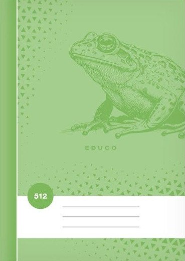 School lined notebook in A5 format, in green color, with a frog motif, in covers made of coated paper. The notebook is primarily intended for first graders who are starting to learn to write. The pages are without borders.