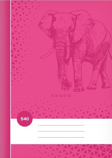 School notebook without lines in A5 format, in raspberry color, featuring an elephant motif, with covers made of coated paper.