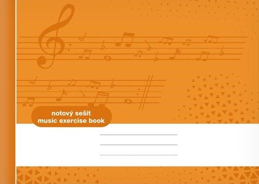 A5 landscape music notebook in orange color, with covers made of coated paper. The notebook is intended for music education for writing notes.