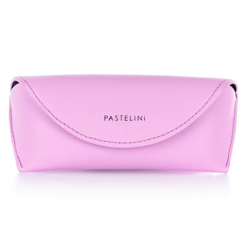 Glasses case in purple design for storing sunglasses and prescription glasses. Magnetic closure.