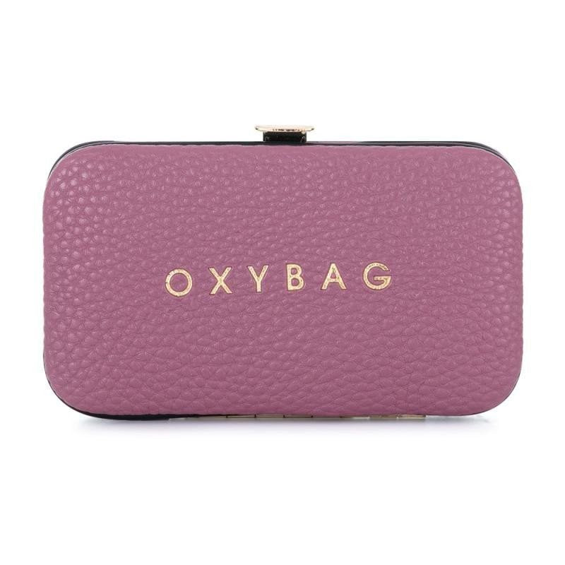 Travel manicure set 6 pcs in pink design. The silver set includes scissors, nail clippers, an angled tweezer, a file, a manicure stick, and a cuticle pusher. Ideal size for a handbag or travel.