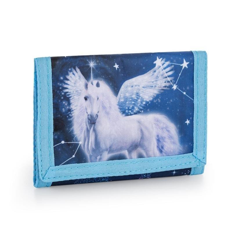 Practical textile wallet with Velcro. It has a zippered pocket for coins at the back, one compartment for banknotes inside, six card slots, and one transparent pocket. Dimensions: 140x105x20mm, Weight: 0.052kg